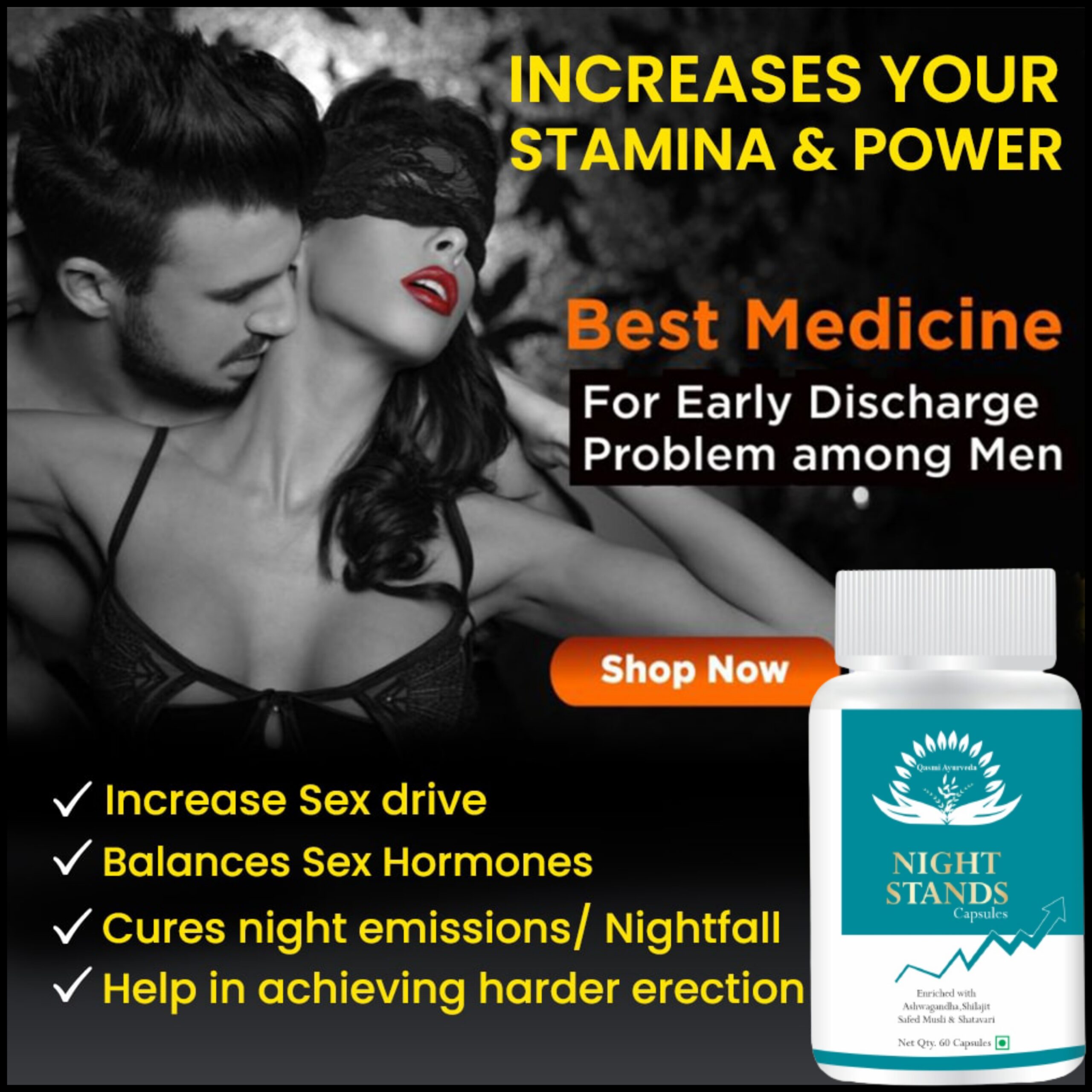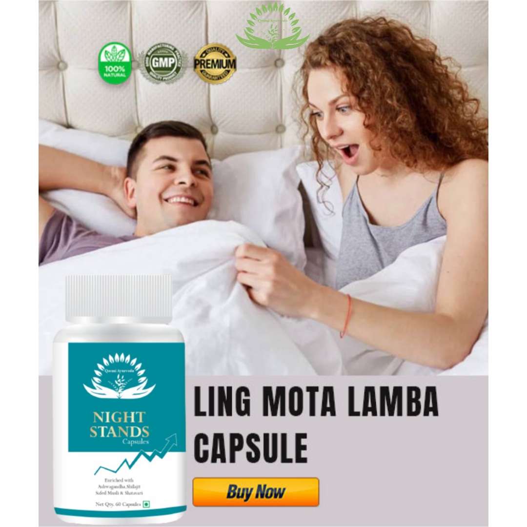 Qasmi Night stands Capsule is an ayurvedic medicine to enlarge the male sexual part (penis). This is meant to promote the sexual function of men It is full of natural anti-oxidant, herbs, and minerals that are needed to maintain the wellness of the body as well as improve Libido, boost fertility, increase stamina and endurance. It can give you increased penis size up to 8 inches. Improves Sex Stamina and Increase Sex Timing or want to strengthens the penis for harder erections. Helps to increase testosterone levels naturally and to cope with emotional stress and fatigue. Regular uses of it with the conjunction of the hammer of joy granules nourish mind and body with intense erection, longer hardness, and sex drive satisfaction.